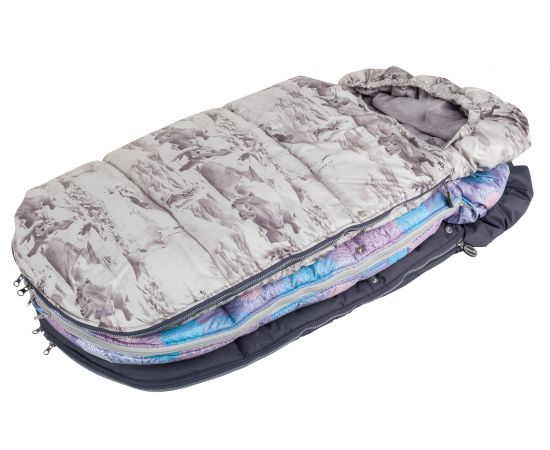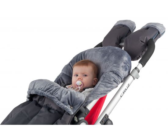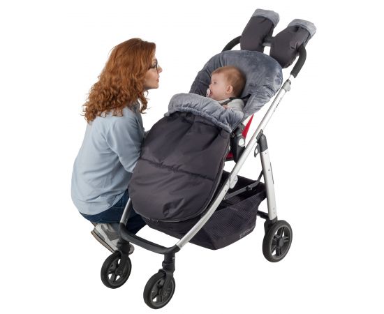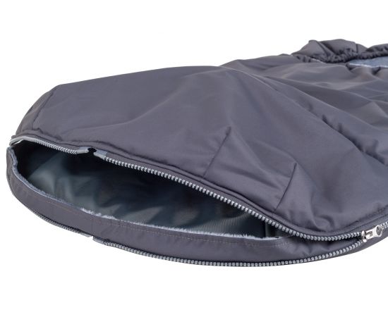 • Верхняя часть конверта оборачивается вокруг бампера и фиксируется кнопками, превращая конверт в накидку для ног.