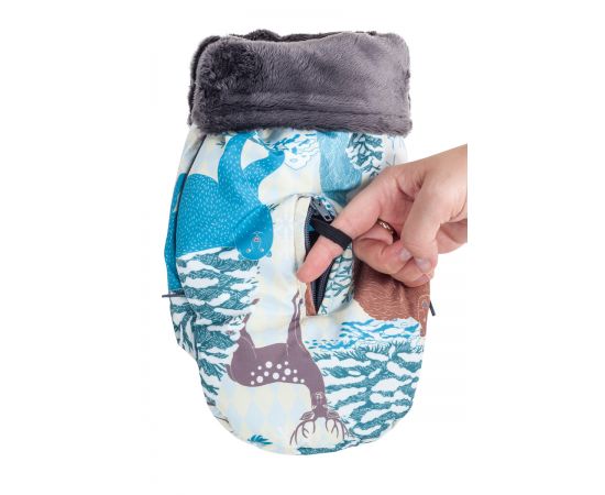 • для крепления рукавички на ручку коляски трости предусмотрена петелька, расположенная на изнаночной стороне возле центральной молнии