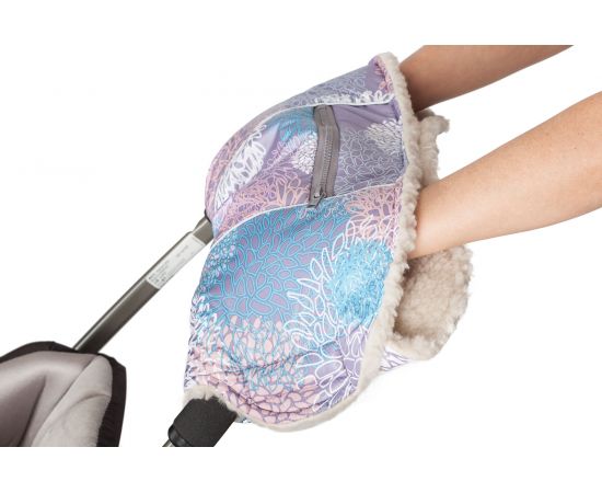 Даже если на улице ледяной холод, руки взрослого, который управляет коляской, всегда в тепле. Рукам в муфте с подкладкой из овечьей шерсти, утеплителем из шерсти мериноса и непромокаемым внешним материалом (защита муфты от атмосферного воздействия) всегда тепло и сухо. Муфта крепится на ручке коляски, ее можно не снимать. Имеется утепленный карман для телефона и мелочей.