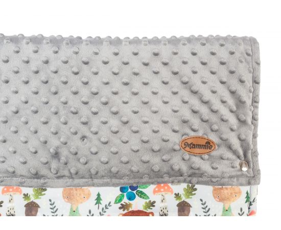 Двухстороннее одеяло Mammie для коляски: с одной стороны тактильная ткань Velboa, с другой — плащевая ткань c водооталкивающей пропиткой. Одеяло фиксируется вокруг бампера при помощи кнопок. В районе ног грязезащитная вставка из плащевой ткани. Незаменимая вещь для пикников и ежедневных прогулок с ребенком.